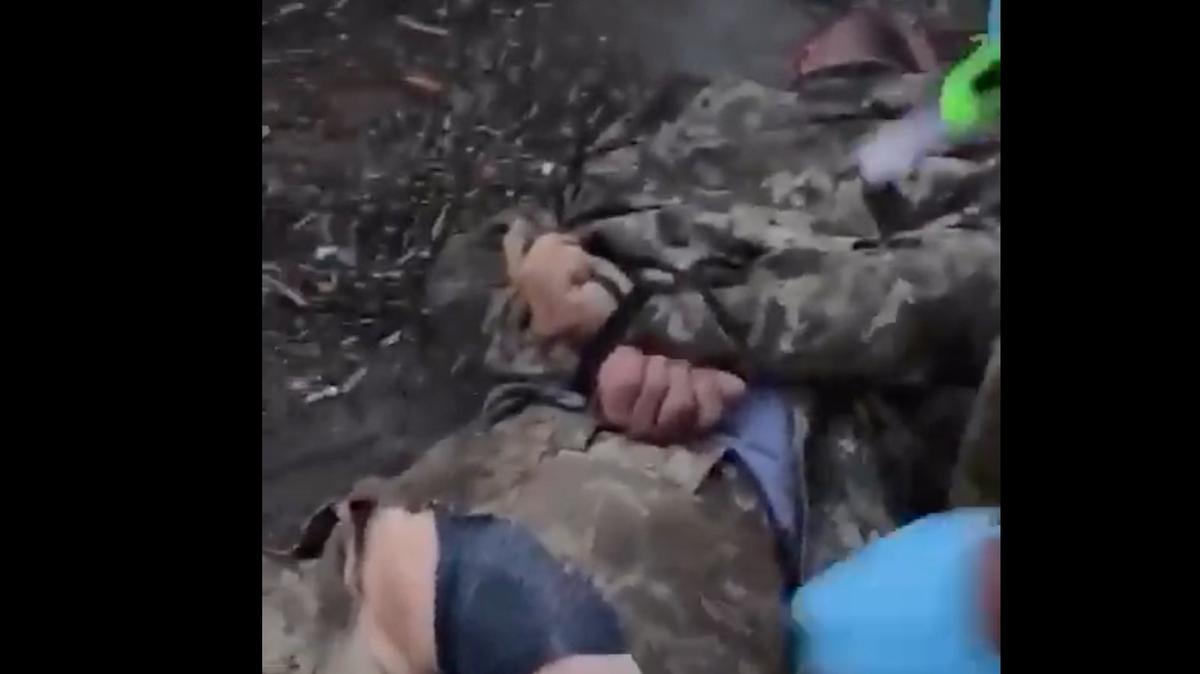 Сначала появилось видео, на котором мужчине отрезают половые органы канцелярским ножом. Делает это человек в военной форме с нашивкой на рукаве с буквой «Z». Когда связанный и лежащий на земле солдат пытается сопротивляться, его пинают ногами по голове. Один из военных (предположительно, снимающий происходящее на камеру) называет жертву «пидорасом».