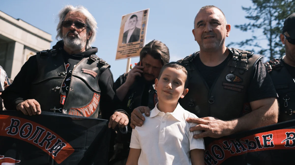 Здесь же, в Берлине, 9 мая 2024 года, мальчик лет одиннадцати бодро и громко кричит: «Россия вперед!» вдогонку полицейским. Они тащат мужчину в футболке с Путиным. Мужчина ругается матом и просит не заламывать руки. Толпа скандирует «Молодец! Мы тебя любим!» на русском и «Позор!» на немецком. Мужчину задерживают за попытку отобрать украинский флаг у другого посетителя Тиргартена.