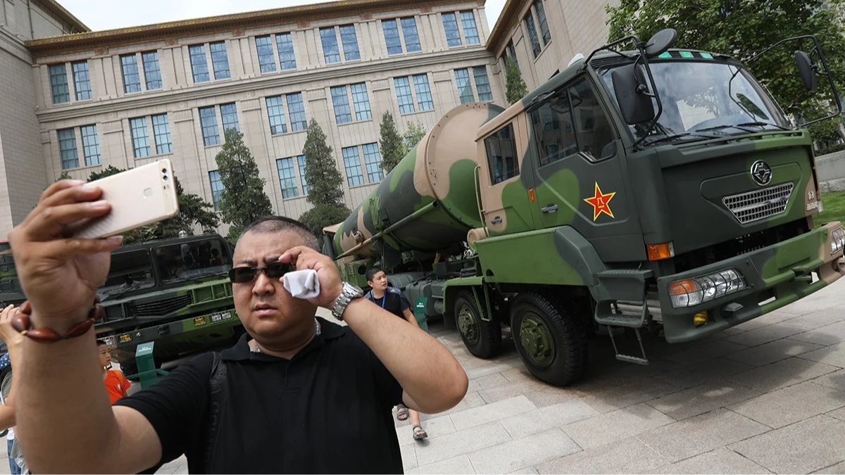 Посетитель фотографируется рядом с ракетно-ядерным комплексом вооружения DF-31, представленным на выставке в Военном музее в честь 90-летия армии Китайской Народной Республики в Пекине, Китай, 27 июля 2017 года. Фото: Wu Hong / EPA