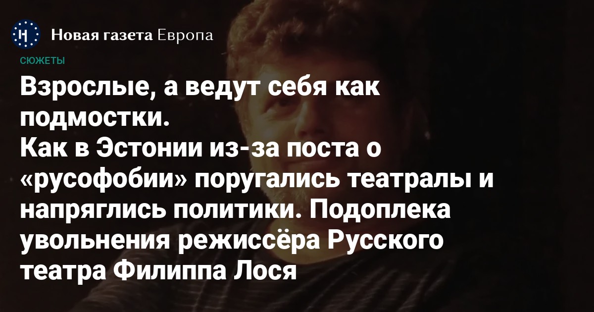 Скандал из-за публикации в Facebook, которую разместил на своей странице режиссер Русского театра в Таллине Филипп Лось, разгорелся на исходе августа. В своем посте он заявил о «тухлой облезлой русофобии», поразившей, по его мнению, эстонское общество.