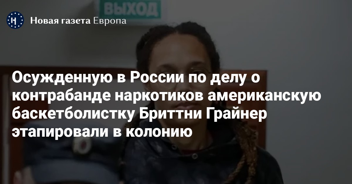 Американскую баскетболистку Бриттни Грайнер, которую в августе приговорили к девяти годам колонии по делу о контрабанде наркотиков, этапировали в колонию. Об этом РБК рассказали ее адвокат.
