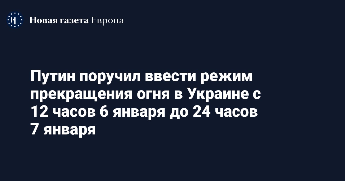 Путин поручил ввести режим прекращения огня в Украине с 12 часов 6 января до 24 часов 7 января