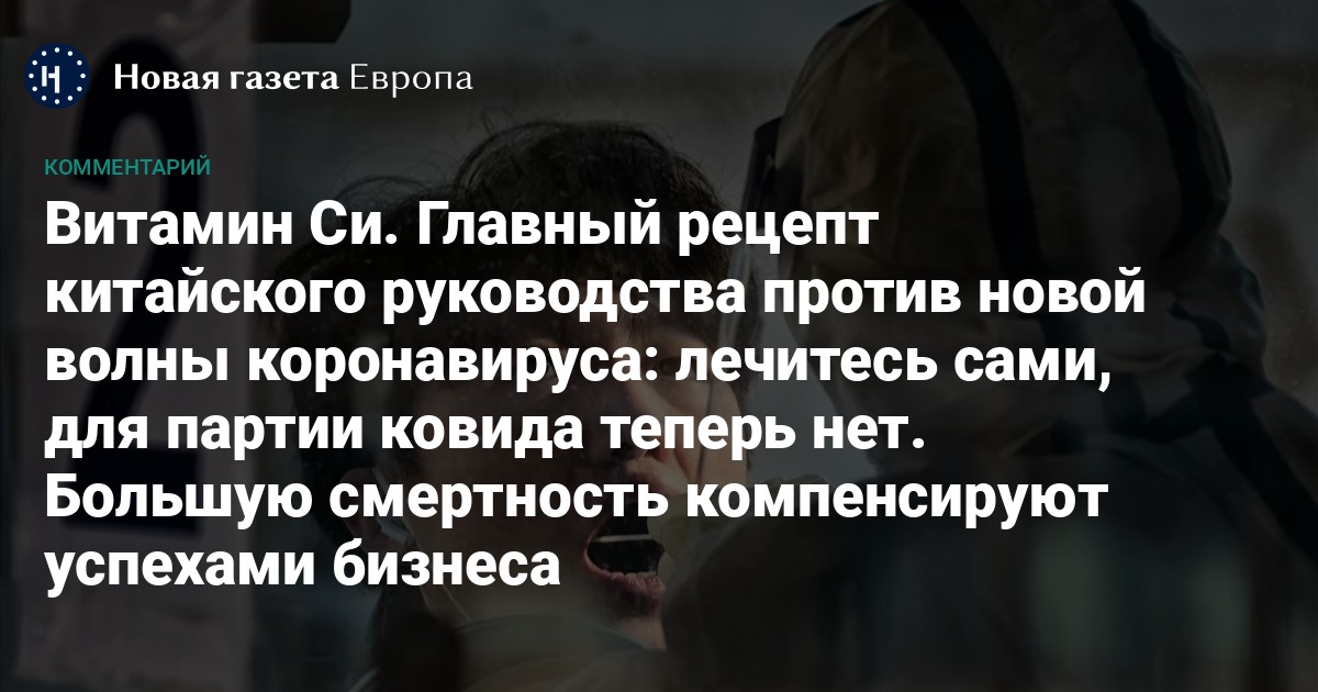 При переводе с языка китайской бюрократии на язык практических рекомендаций получаем описание происходящего в Китае хаоса после отмены политики «нулевой терпимости». Цитируя героиню популярного фильма: «Счастливых вам голодных игр. И пусть удача всегда будет с вами!» Государство берет на себя заботу о гражданах в зоне риска — пожилых людях, беременных женщинах, детях и пациентах с хроническими заболеваниями, судьба всех остальных — в их руках.