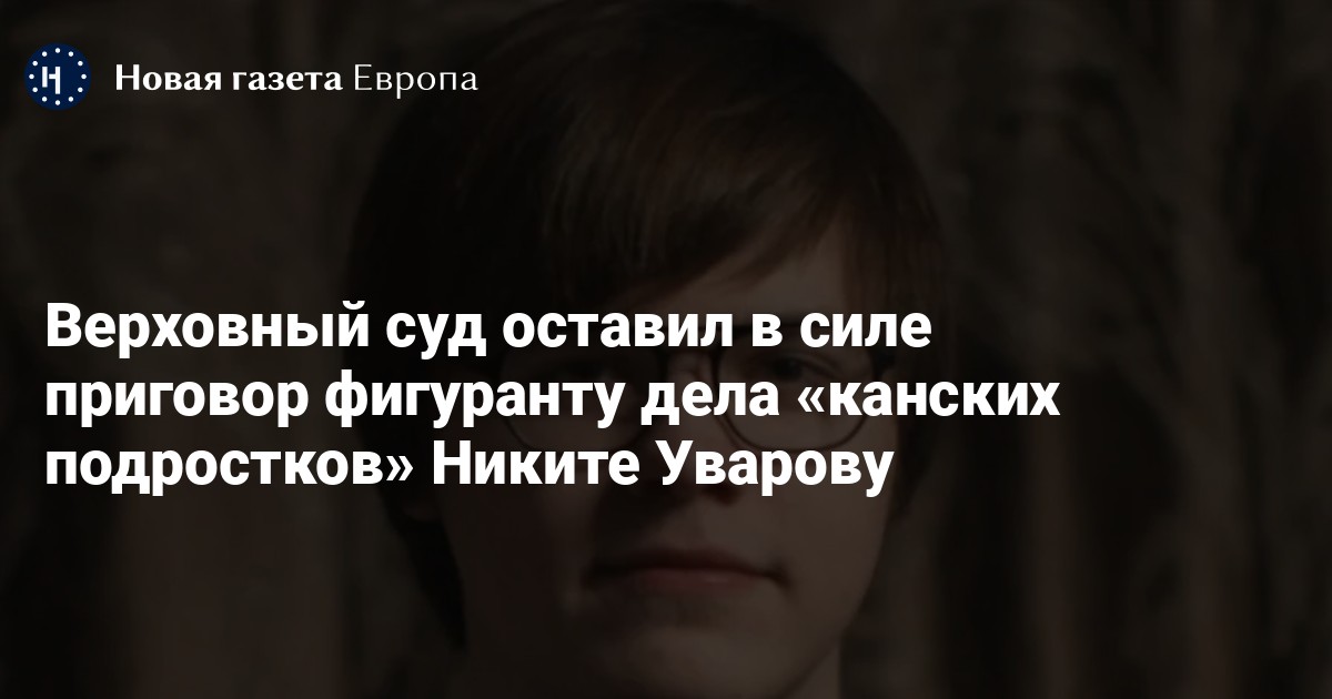 Верховный суд оставил без изменений приговор фигуранту дела «канских подростков» Никите Уварову, отбывающему пятилетний срок в колонии. Об этом «Новой газете Европа» сообщил адвокат Владимир Васин.