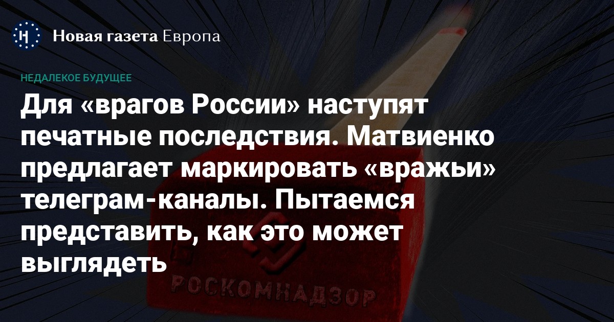 Валентина Матвиенко, еще совсем недавно выступавшая за переговоры с Украиной «без всяких условий», заявила о необходимости «маркировать вражьи каналы, как это делают с иноагентами», чтобы «люди понимали, кто за этим стоит». Роскомнадзор сообщил, что предложение пока официально «не поступило», когда поступит, «оно будет рассмотрено».