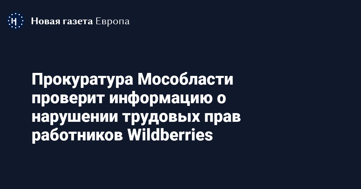 Прокуратура Мособласти проверит информацию о нарушении трудовых прав работников Wildberries. Об этом говорится в сообщении Генеральной прокуратуры РФ.