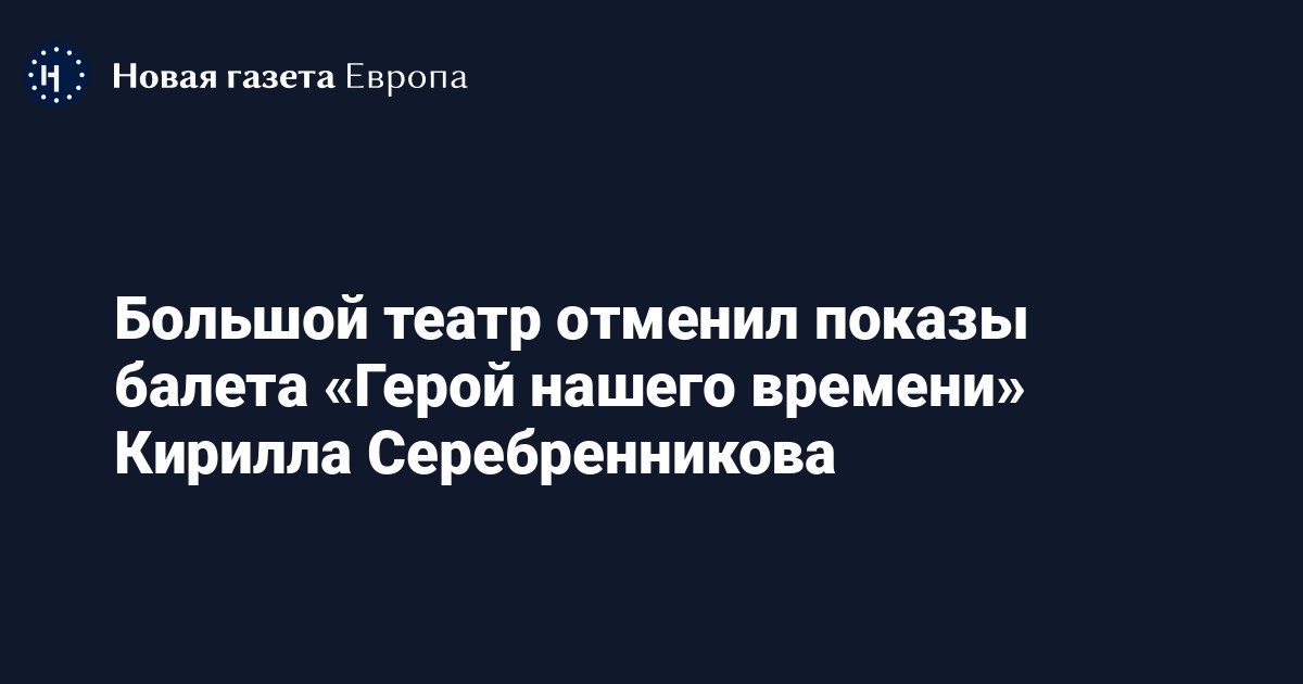 Большой театр отменил показы балета «Герой нашего времени» Кирилла Серебренникова