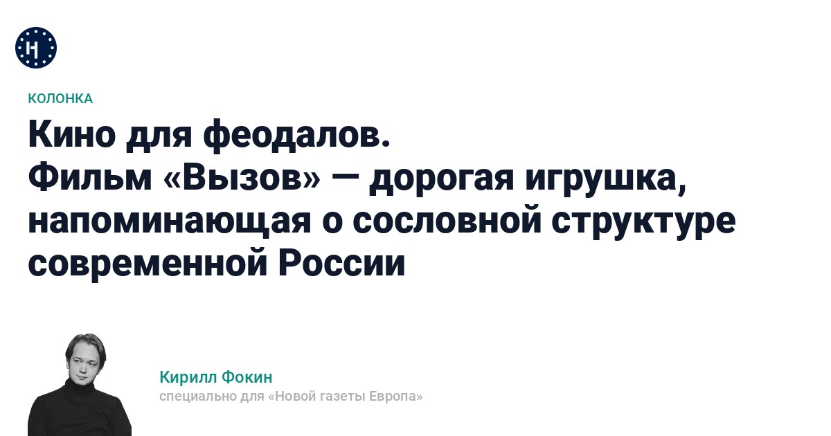 Сословная природа современной России отражается и в процессе создания, и в премьерных московских показах картины. Пока Госдума утверждает платформу для цифровизации крепостного права — пролог к новым тысячам и тысячам бессмысленных смертей, богемная публика, которой ничто не угрожает и детей которой не отправят на фронт, даже получи они сотню электронных повесток, — смотрит и аплодирует сверхдорогому, красивому, но, в сущности, никому не нужному зрелищу.