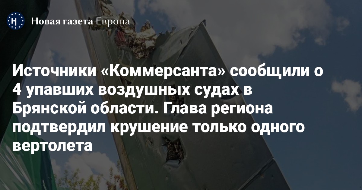 Источники «Коммерсанта» сообщили о 4 упавших воздушных судах в Брянской области. Глава региона подтвердил крушение только одного вертолета