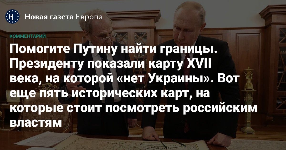 На этой неделе Владимир Путин встретился с председателем Конституционного суда РФ Валерием Зорькиным. Среди прочего Зорькин показал Путину французскую карту XVII века, на которой «нет Украины». Выступление Зорькина вызвало у Путина большой энтузиазм, он вновь повторил свою любимую мысль: «После Октябрьской революции начали образовываться всякие квазигосударственные образования, а советская власть создала советскую Украину. Это хорошо известно всем. До этого никакой Украины не было в истории человечества».