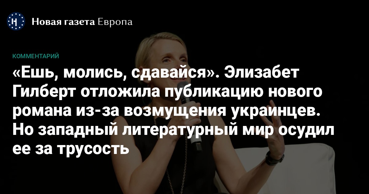 Некоторые более тонкие комментаторы замечают, что Гилберт, вообще-то, никогда не претендовала на роль «солдата культуры». И «Ешь, молись, люби», вообще-то, — книга из жанра селф-хелп, а вовсе не глубинное и важное исследование человеческой натуры. А тот ее бестселлер тоже много критиковали за экзотизацию чужих стран, за взгляд «страдающей белой богатой женщины». Потому «сочувствующая» и «эмпатичная» Гилберт, отзывающая публикацию, — с одной стороны, точное попадание в ее же имидж, с другой — выдающийся маркетинговый жест: книга-то всё равно выйдет, а событием она уже стала.