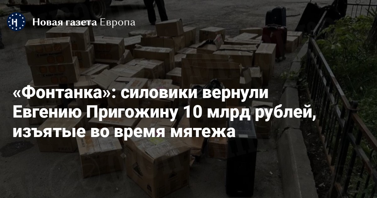 «Фонтанка»: силовики вернули Евгению Пригожину 10 млрд рублей, изъятые во время мятежа