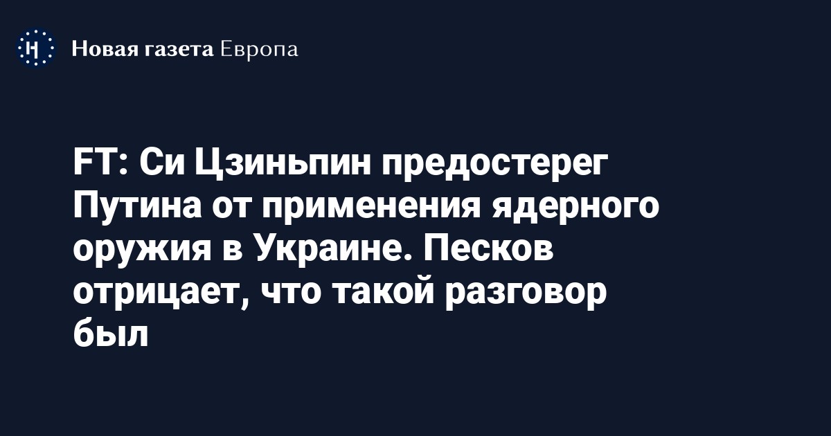 По данным газеты, глава КНР вынес предупреждение во время официального визита в Москву в марте. Старший советник правительства Китая сообщил, что разговор с Путиным о ядерном оружии был центральным элементом китайской кампании по восстановлению испорченных отношений с Европой.