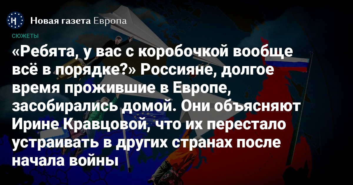 Нам неизвестно, как много эмигрантов сотрудники министерств уговорили вернуться в Россию. Однако спецкор «Новой-Европа» Ирина Кравцова сама сумела разыскать «старых эмигрантов», которые именно сейчас собираются возвращаться на родину, и поговорила с ними о том, почему они приняли такое решение.