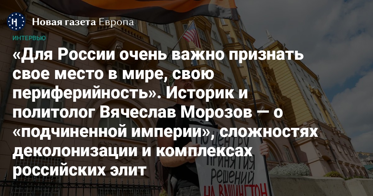 Начиная как минимум с XIX века, российские элиты строят свою идентичность вокруг Запада: в попытках стать его равноправной частью или, наоборот, отвергнуть и найти «особый путь». Невозможность получить признание приводит к фрустрации, ресентименту и в конечном счете — к попыткам «восстановить справедливость» с помощью силы. После вторжения в Украину Россия будет вынуждена наконец признать свой статус полупериферийной страны, считает профессор Тартуского университета, эксперт в области европейско-российских отношений Вячеслав Морозов. Мы поговорили с ученым о российском имперском сознании, озабоченности Европой и сценариях деколонизации России.