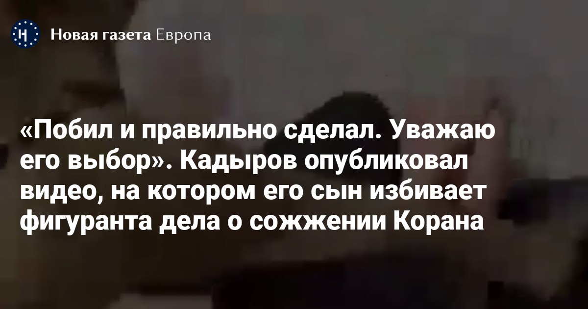 Глава Чечни Рамзан Кадыров выложил видео, на котором его 15-летний сын Адам избивает 19-летнего фигуранта дела о сожжении Корана Никиту Журавеля. Ролик был опубликован в телеграме Кадырова.
