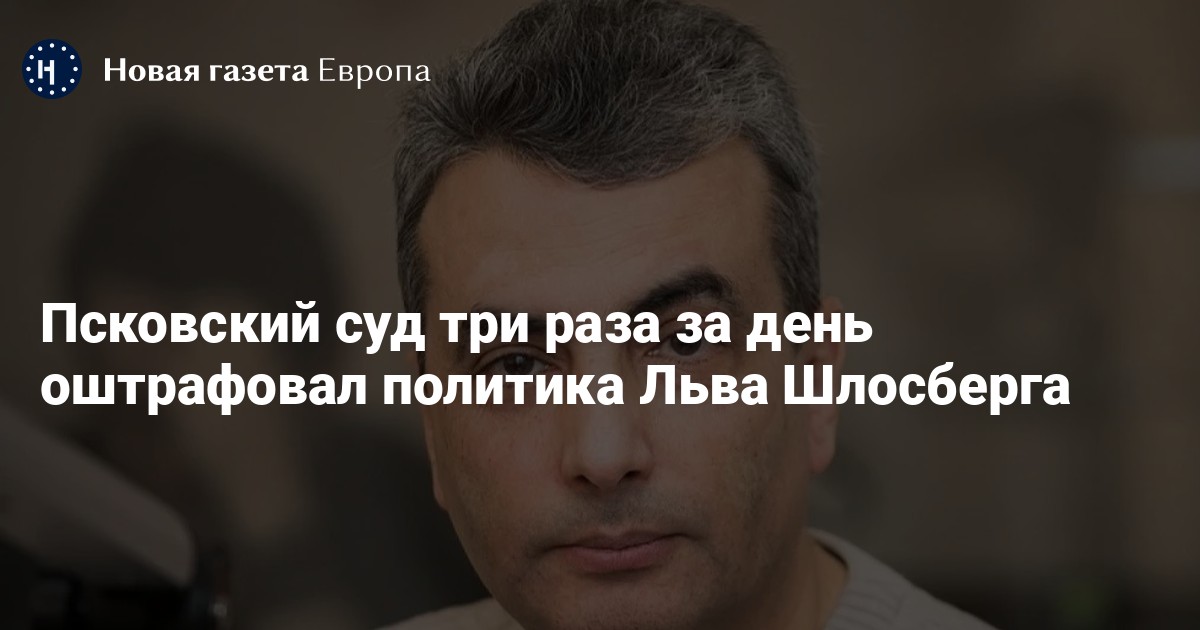Псковский городской суд дважды оштрафовал политика Льва Шлосберга из-за отсутствия маркировки «иноагента» (часть 4 ст. 19.34 КоАП РФ), а позже назначил ему третий штраф по обвинению в «распространении информации о террористической организации без указания на ее статус» (часть 2 ст. 13.15 КоАП РФ). Об этом сообщается в телеграм-канале объединенной пресс-службы судов региона.