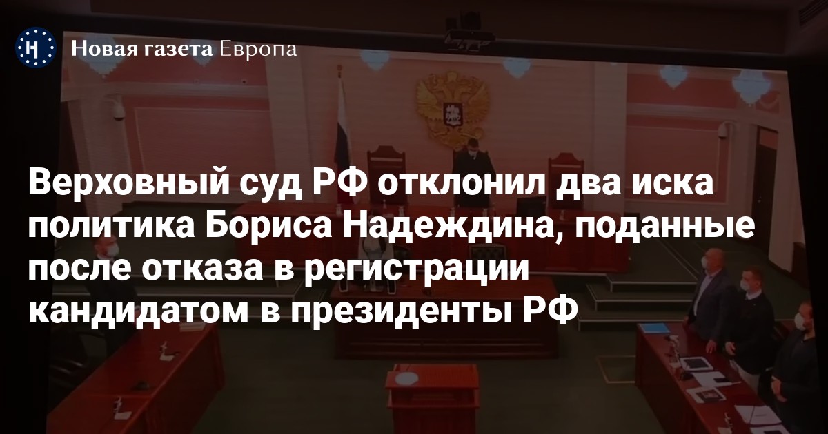 Верховный суд РФ отклонил два иска политика Бориса Надеждина, поданные после отказа в регистрации кандидатом в президенты РФ