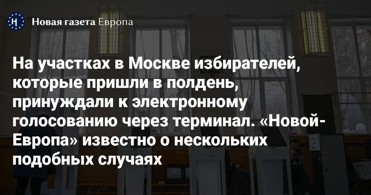В редакцию «Новой-Европа» поступило сообщение, что избирательницу из Москвы вынудили проголосовать через терминал электронного голосования (ТЭГ), которые были установлены на избирательных участках. Терминалы должны использовать те избиратели, кто решился голосовать дистанционно в момент прихода на участок.