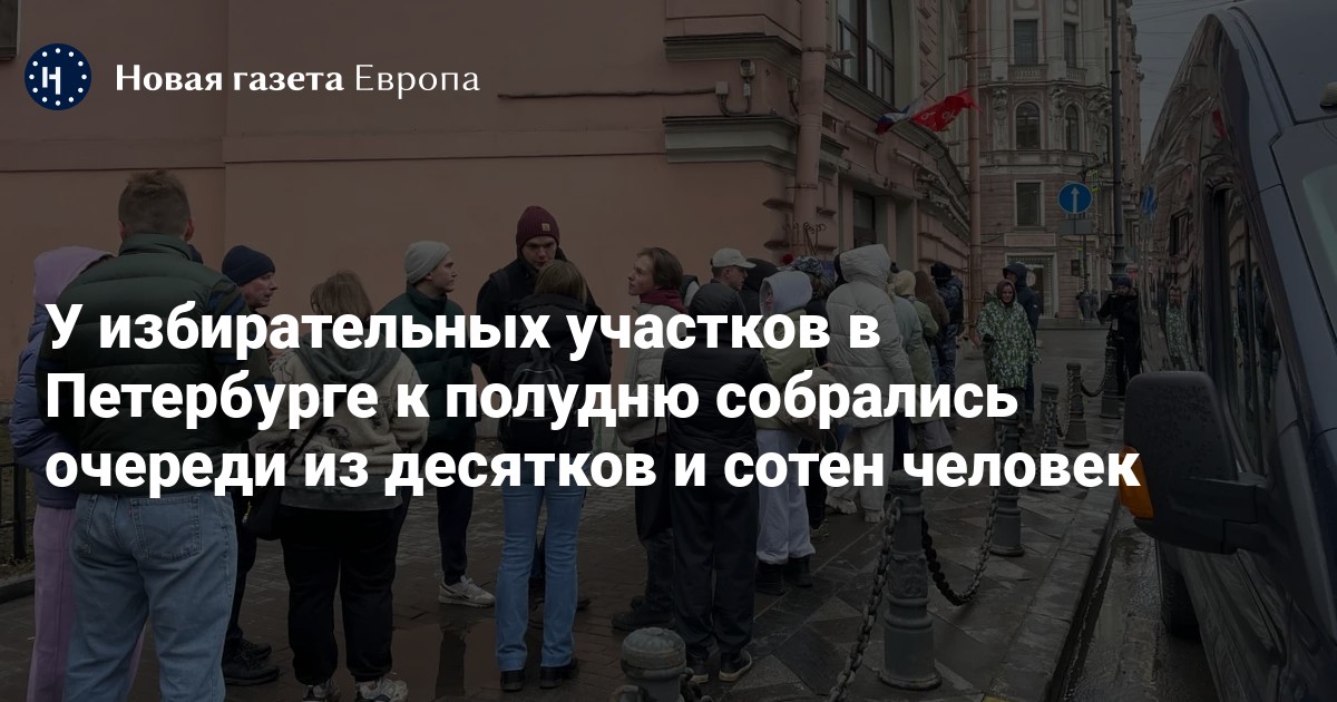 По его словам, очереди стоят к участкам в Центральном, Петроградском, Василеостровском, Невском, Выборгском, Приморском районах города. Пришедшие на один из УИКов подтвердили корреспонденту «Новой-Европа», что принимают участие в акции «Полдень против Путина».