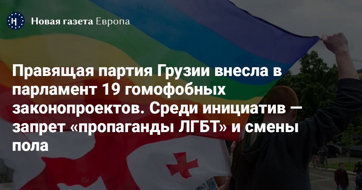 В Грузии правящая партия «Грузинская мечта» внесла на рассмотрение парламента пакет из 19 законопроектов «О семейных ценностях и защите несовершеннолетних». Об этом заявил на брифинге спикер парламента Грузии Шалва Папуашвили.
