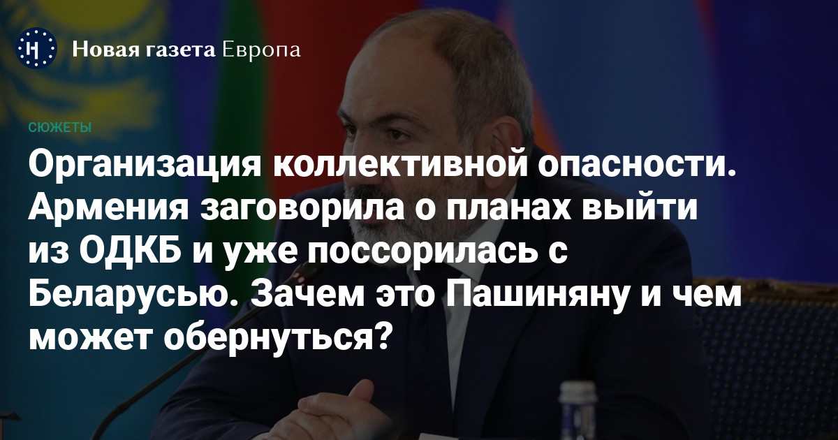 «Выйдем — вы нас этим пугаете?» — так премьер-министр Армении Никол Пашинян ответил оппозиционному депутату на реплику о том, почему страна выражает недовольство ОДКБ (Организацией договора о коллективной безопасности), но остается ее членом.