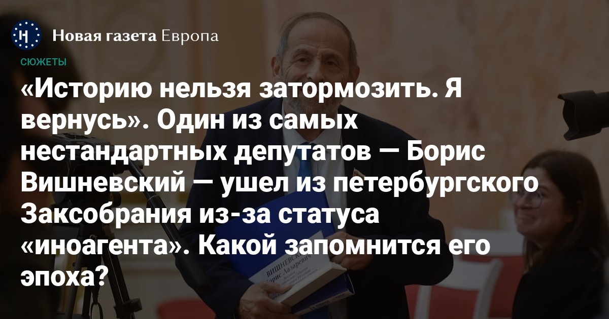30 октября один из самых нестандартных и не вписывающихся в общее представление о народных избранниках депутат Борис Вишневский сообщил, что вынужден досрочно сложить с себя полномочия депутата Законодательного собрания Санкт-Петербурга из-за статуса иноагента. Впрочем, депутатство лишь одна из ипостасей Вишневского: он еще независимый журналист и правозащитник. Этот симбиоз, кажется, власти ему и не простили. Его позиция против войны с Украиной изначально не оставляла шанса долго продержаться в нынешней политической жизни. Но он продержался еще два года, пока минувшей весной не получил от государства «черную метку»: статус иноагента. По закону этот ярлык запрещает участвовать в любой политической деятельности. Но по этому же закону граждане, получившие статус «иноагента», могут оспорить его в суде. Вишневский оспорил, но его попытки, как, попытки большинства коллег по статусу, пока закончились одним: суды лишь штампуют принятые решения. Впрочем, теперь уже экс-депутат намерен продолжать оспаривать статус даже после ухода из Заксобрания. Из принципа. И продолжать заниматься делом своей жизни — защитой горожан.
