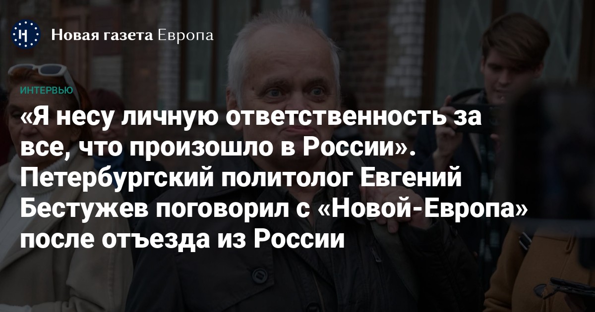 Политолог Евгений Бестужев в 1991 году стал координатором движения «Демократическая Россия». В последнее время занимал пост руководителя отдела гуманитарно-политологического центра «Стратегия» и сопредседателя петербургского отделения движения «Солидарность». 25 октября 2022 года политолог был задержан на съемной квартире в Петербурге. Его обвинили в распространении «фейков» о российской армии в 27 постах в социальной сети «ВКонтакте». 5 ноября 2024 год Калининский район суд Петербурга вынес Бестужеву приговор: 5 лет 3 месяца лишения свободы условно.