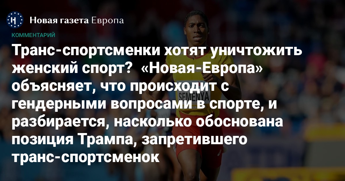 - «Спортсменки должны соответствовать женской гендерной идентичности (идентифицировать себя женщиной и принимать гормональную терапию. — Прим. ред.) [...];