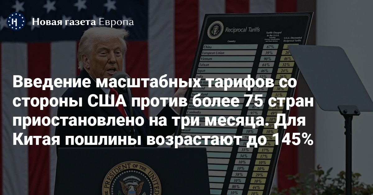 Трамп на 90 дней приостановил введение масштабных тарифов против более 75 стран. Об этом президент США сообщил в своей социальной сети Truth Social.