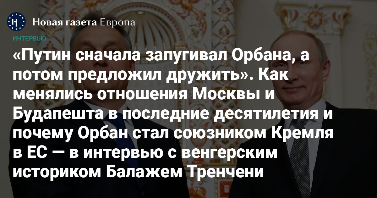 Венгрия под руководством своего премьер-министра Виктора Орбана регулярно становится если не проводником, то как минимум защитником интересов Кремля в ЕС. Такие тенденции сложились еще после российской аннексии Крыма, но стали особенно заметны с началом полномасштабного вторжения России в Украину. Так, именно Будапешт теперь постоянно становится препятствием на пути продления или введения новых санкций ЕС против Москвы. Однако союзнические отношения Венгрии и России выглядят неожиданными, если взглянуть на историю этих стран в XX веке и вспомнить исходные проевропейские и пронатовские установки, с которыми Виктор Орбан приходил к власти более десяти лет назад. О том, почему тяжелое историческое наследие не мешает взаимной симпатии Виктора Орбана и Владимира Путина, — в интервью с венгерским историком, профессором Центрально-Европейского университета Балажем Тренчени.