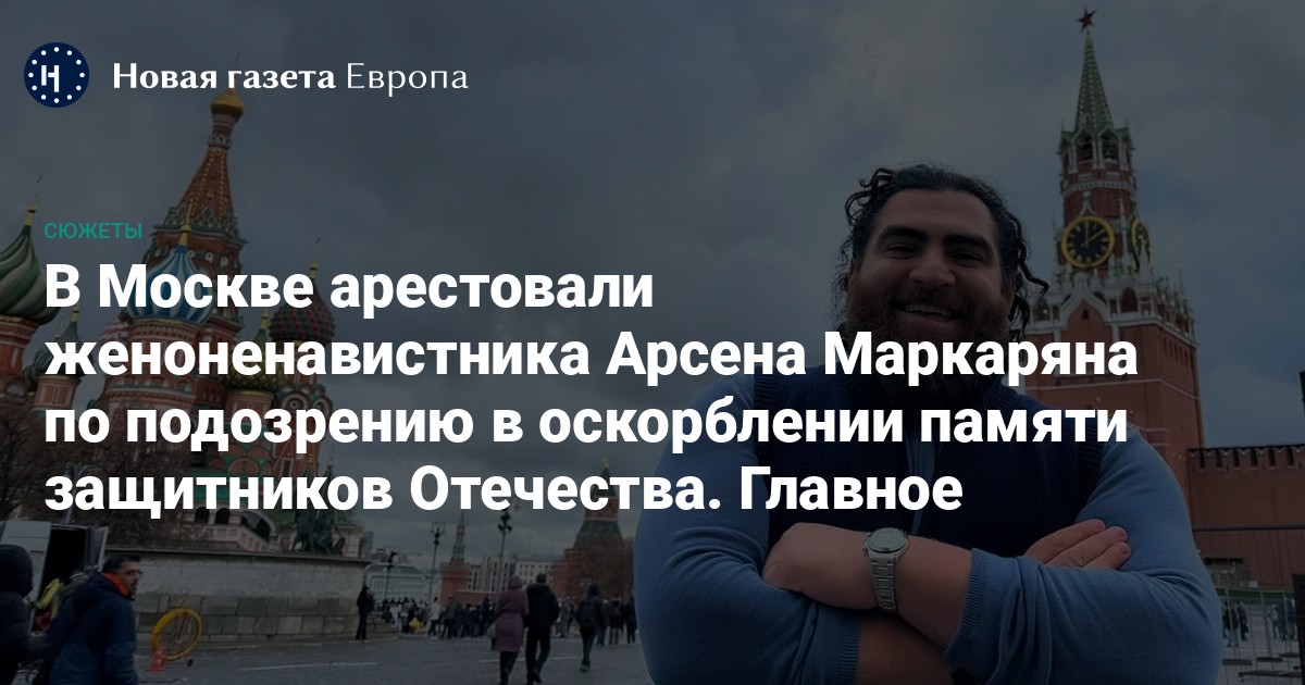 25 августа в Москве арестовали блогера Арсена Маркаряна, подозреваемого в оскорблении памяти защитников Отечества. Его задержали несколько дней назад, когда, по данным телеграм-каналов, он в багажнике автомобиля ехал в сторону Беларуси. Ранее на него жаловалась в прокуратуру Екатерина Мизулина, также против него инициировали уголовное дело о призывах к терроризму.