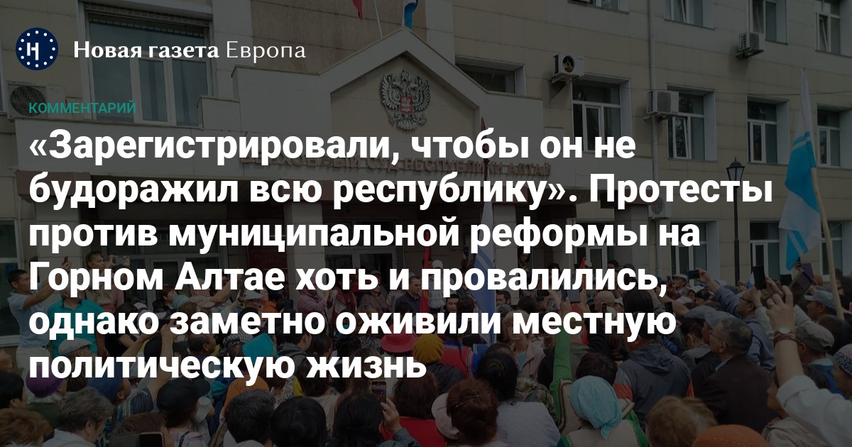 Верховный суд оставался последней надеждой на восстановление справедливости — однако и она оказалась тщетной. Зато теперь для всей России Алтай — образец живой, кипящей политики на муниципальном уровне, такой, какую, казалось бы, в стране уже и не осталось. «Новая газета Европа» рассказывает, как протест, зашедший в тупик, принес в региональную повестку неожиданный поворот, и какие фигуры эта волна подняла наверх.