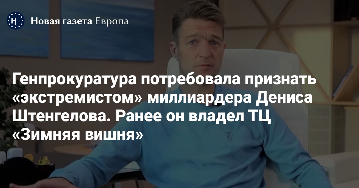 Генпрокуратура РФ подала в Тверской районный суд Москвы иск против миллиардера Дениса Штенгелова и его отца Николая с требованием признать их «экстремистами». Соответствующая карточка появилась на сайте московских судов, пишет «Медиазона».