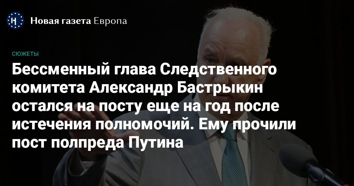 26 августа Владимин Путин продлил срок службы Бастрыкина на посту главы СК на год, сообщили «Коммерсант» и «Интерфакс» со ссылкой на источники.