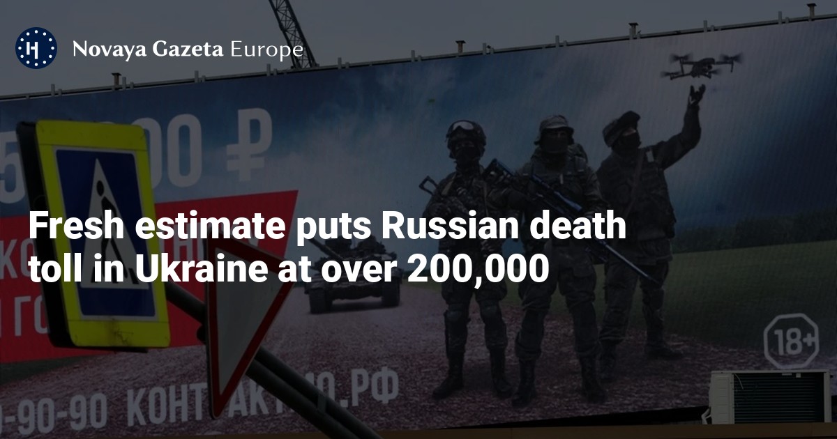 Around 220,000 Russian servicemen between the ages of 18 and 55 had now died in the war, according to the latest calculations made by independent media outlets Mediazona and Meduza based on data from the probate registry.