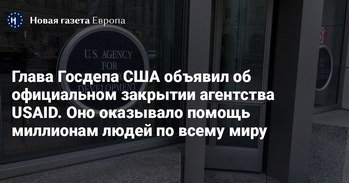 Агентство США по международному развитию (USAID) официально закрывается, заявил госсекретарь США в соцсети X.
