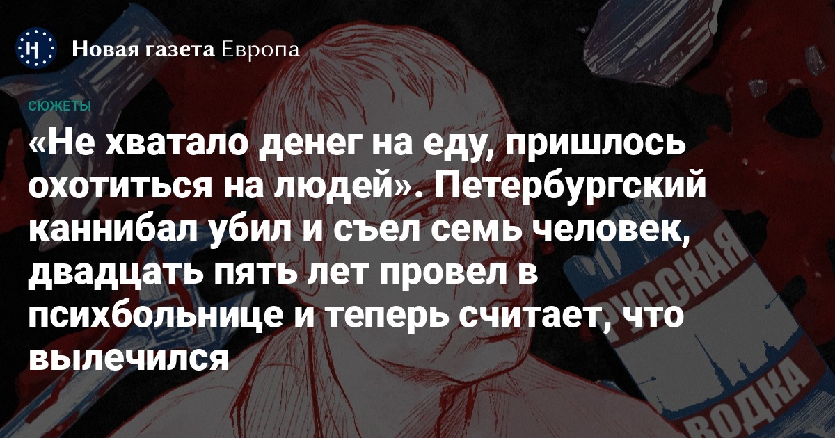 Петербургского каннибала Ильшата Кузикова еще в советские времена признали недееспособным и несколько раз отправляли на лечение в психдиспансер. Но с развалом СССР о психически нездоровых людях на некоторое время забыли. Когда у Кузикова спрашивали, зачем он ел людей, тот отвечал, что пенсии по инвалидности на еду не хватало и пришлось добывать пропитание самостоятельно.