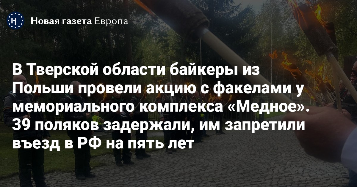 39 гражданам Польши запретили въезд в Россию на пять лет после акции с факелами на польском воинском кладбище в мемориальном комплексе «Медное» в Тверской области. Об этом сообщили в региональном управлении МВД.