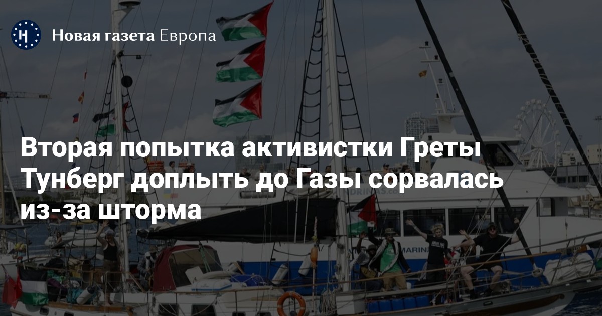 Это уже вторая попытка Тунберг и других активистов добраться по морю до сектора Газа. В июне они поплыли в сторону эксклава на яхте Мадлин. Израильские военные перехватили судно. Позднее активистов депортировали.