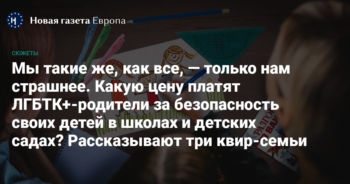 «Новая газета Европа» рассказывает, как российские квир-семьи готовят детей к детскому саду и школе.