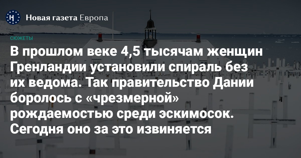 В минувшую среду, 27 августа, премьер-министр Дании Метте Фредриксен принесла извинения женщинам Гренландии за программу ограничения рождаемости, которая затронула в основном женщин-эскимосок. В заявлении премьера говорилось, что датское правительство не может изменить прошлое, но может взять на себя ответственность за случившееся.