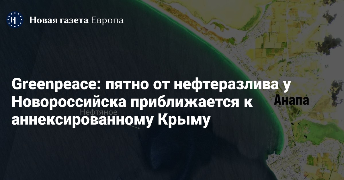 Пятно от разлива нефти у Новороссийска, которое произошло 29 августа, стало приближаться к берегам аннексированного Крыма, сообщает Greenpeace.
