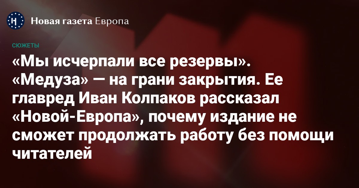 В разговоре с «Новой-Европа» главный редактор «Медузы» Иван Колпаков называет ситуацию «критической». Против издания, подчеркивает он, уже четыре года ведется война на истощение.