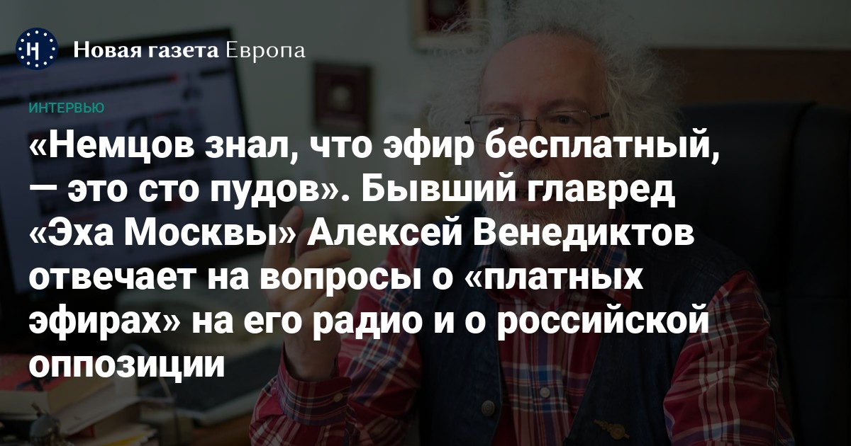 — Экономист Максим Миронов, который часто был гостем на «Эхе», пишет в сети Х: «Венедиктов действительно пускал оппозицию на “Эхо” и давал им эфиры. За деньги. За большие деньги».