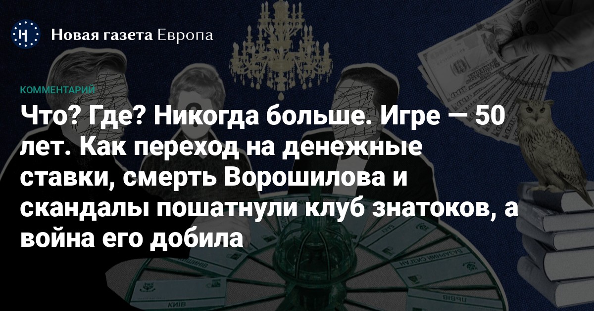 Грустный выходит юбилей. «Золотой», но не «блестит». Игра законсервирована, причем и в прямом смысле слова, стала «консервой», то есть выходит в записи: вдруг эти небрезгливые всё-таки учинят демарш в эфире. Действующие «герои вчерашних дней» скомпроментированы, другие — изгнаны или ушли от позора подальше, новые никак не получаются.