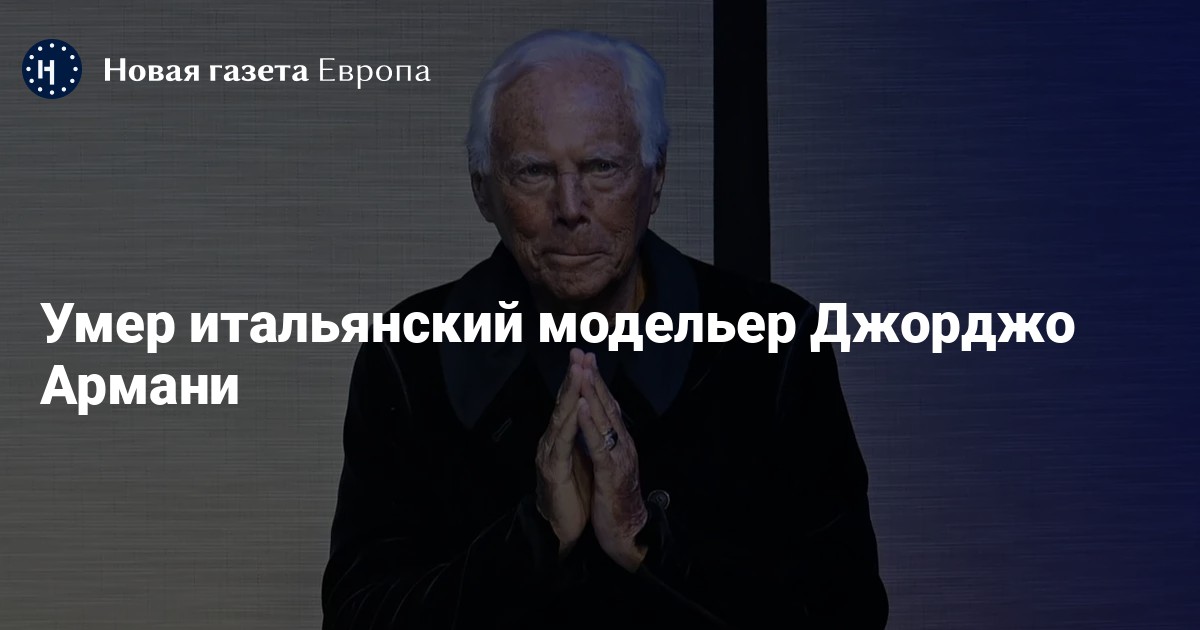 В возрасте 91 года скончался итальянский модельер Джорджо Армани, сообщает La Repubblica.