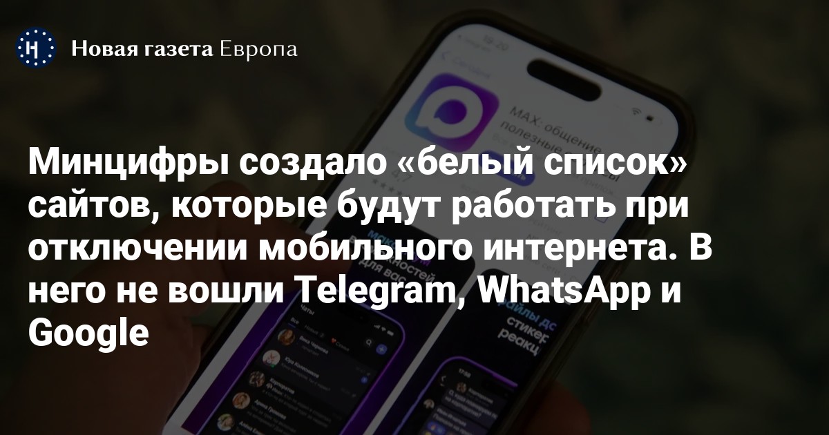 Позднее РБК опубликовало полный перечень сервисов, которые будут открываться при отключении мобильного интернета. В него не попали мессенджеры Telegram и WhatsApp, а также сервисы от Google, включая YouTube. При этом в него вошли: