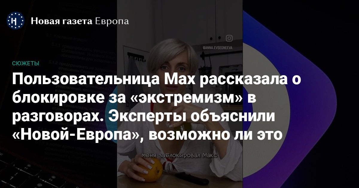 Тогда Анна обратилась в техподдержку, где ей, судя по опубликованным скриншотам, объяснили, что она нарушила несколько пунктов пользовательского соглашения, которые запрещают писать «экстремистские сообщения, обсуждать суицидальные мысли и наркотики». Получить доказательства блокировки и выяснить конкретные причины нарушения правил Max пока не удалось.