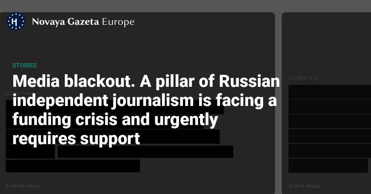 “As part of our crowdfunding campaign, we decided to blackout content that we’d be unable to publish if Meduza were subject to Russian censorship,” Meduza wrote. “Honestly, we have turned ourselves inside out just to make it to autumn. But we do not know what to do next. We have run out of resources.”